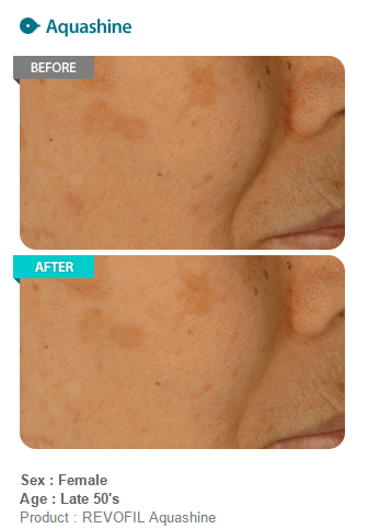 Both means on the structure coincide practically on 80%. There is a rare peptide in the composition of REVOFIL AQUASHINE BR, which works with pigmentation of the skin resulting from age-related changes. When using the tool new stains are simply not formed, because the drug reduces the synthesis of melanin in the human body. Age pigmentation begins to appear actively after reach 50 years of age.