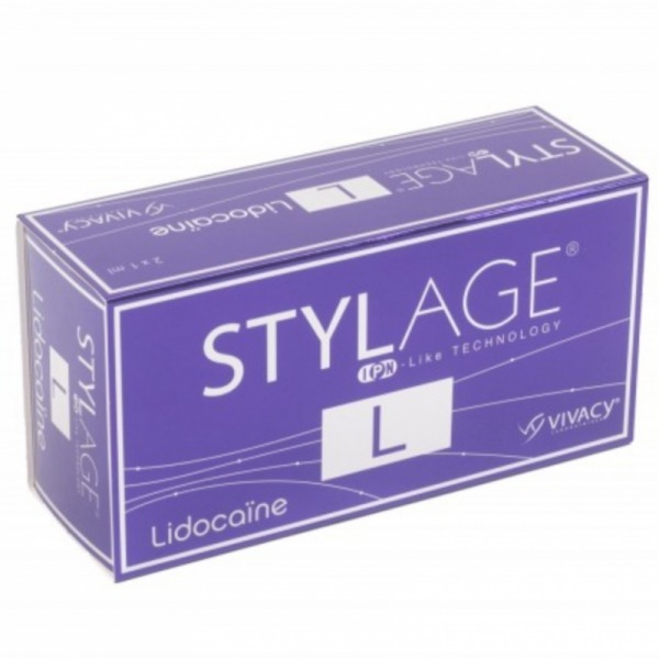 - 2 x 1 ml pre-filled glass, sterile latex free syringes of STYLAGE L with Lidocaine gel
